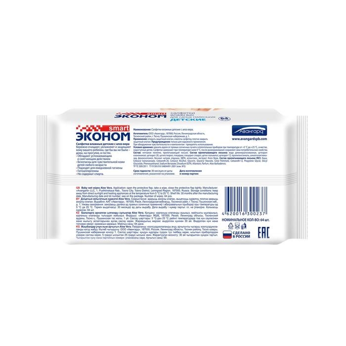 Влажные салфетки «Эконом Smart», детские, 64 шт.