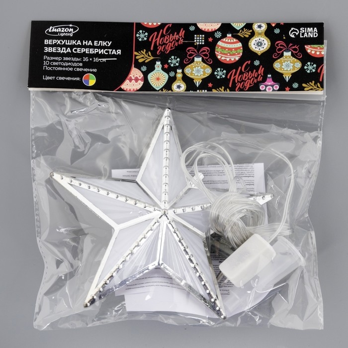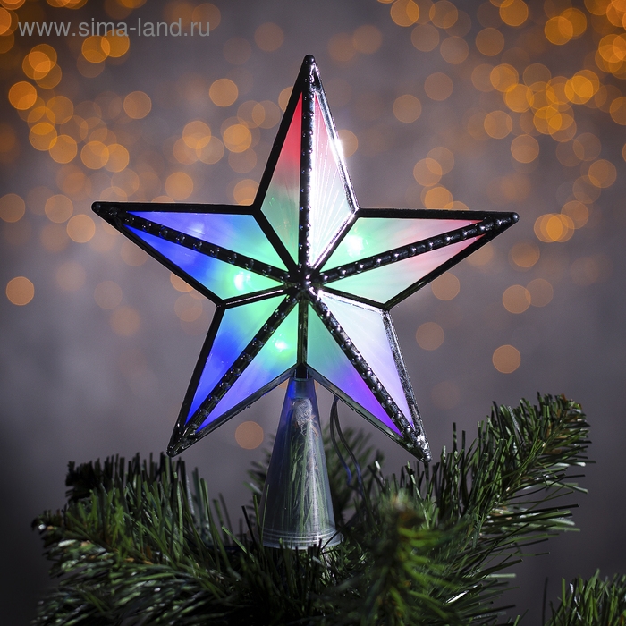 Светодиодная верхушка на ёлку «Звезда серебристая» 16 см, 10 LED, провод 2 метра, 220 В, свечение мульти