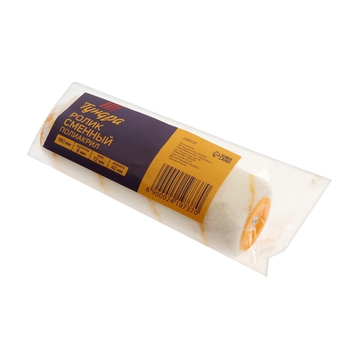 Валик сменный ТУНДРА, полиамид, 180 мм, рукоятка d=6 мм, D=42 мм, ворс 12 мм