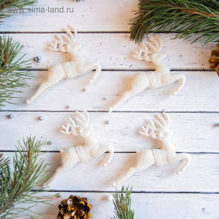 Украшение ёлочное "Белый скачущий олень" (набор 4 шт) 9х5 см