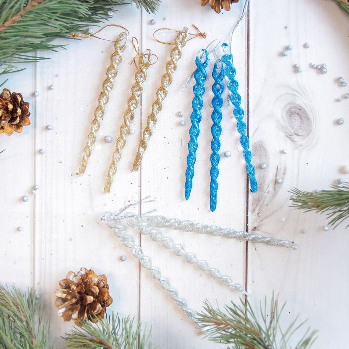 Украшение ёлочное "Сосулька - серпантин" (набор 8 шт) 12,5 см, микс