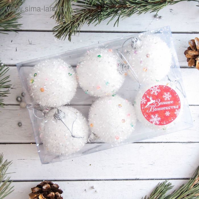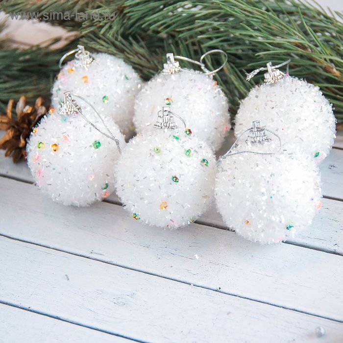 Набор шаров пластик d-5,5 см, 6 шт "Пушинка" белый