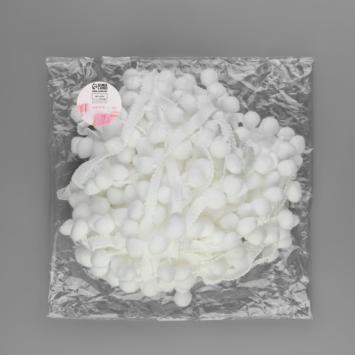 Тесьма декоративная с помпонами, 25 ± 5 мм, 8 ± 0,5 м, цвет белый