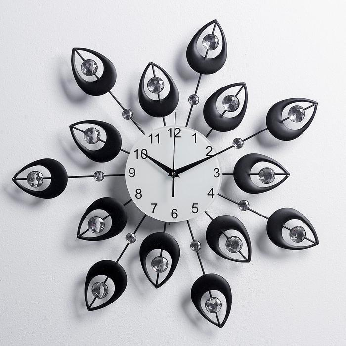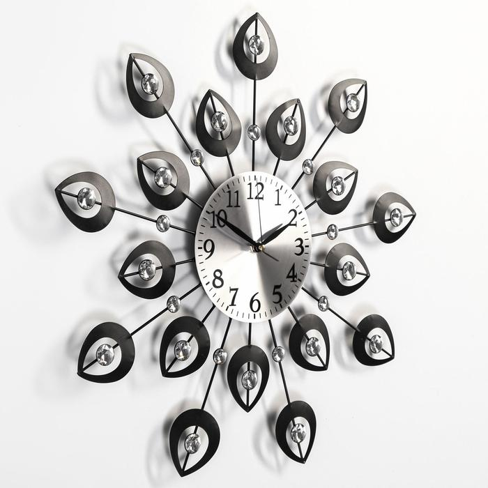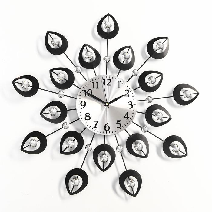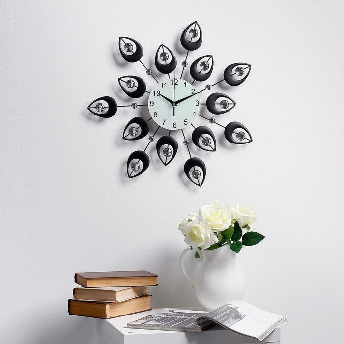 Часы настенные, серия: Ажур, "Чёрные лепестки", плавный ход, d-15 см, 47 х 47 см