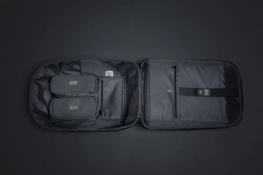 - 2 кармана на молниях, один из которых с портом USB для зарядки - 2 органайзера для туалетных принадлежностей и электронных аксессуаров можно зафиксировать внутри рюкзака на липучках