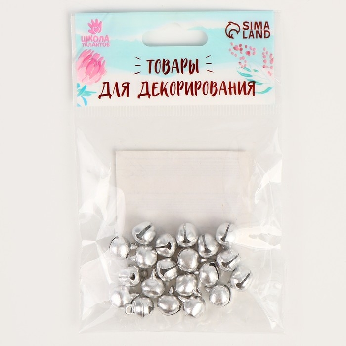Бубенчики для рукоделия, набор 20 шт., размер 1 шт. — 1 см, цвет серебряный