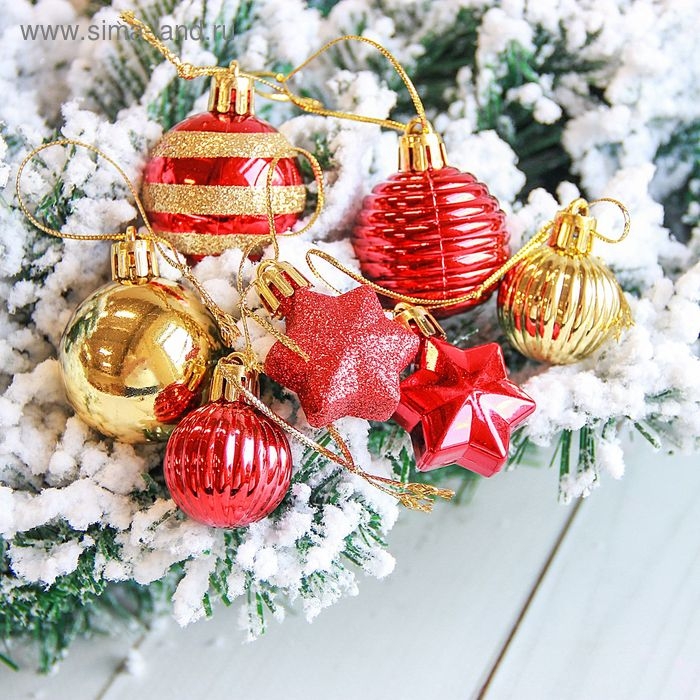 Набор украшений пластик 21 шт "Серпантин" красный золото