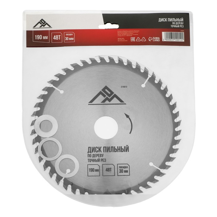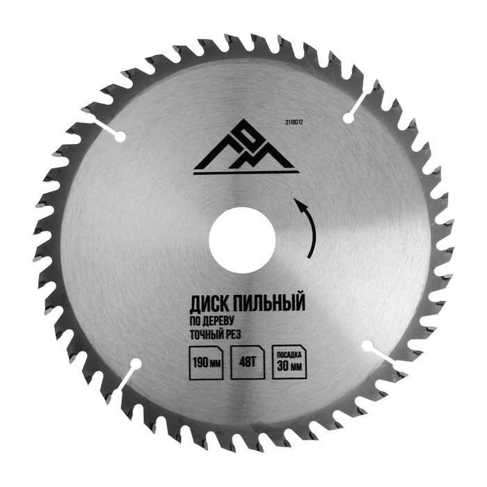 Диск пильный по дереву ЛОМ, точный рез, 190 х 30 мм (кольца на 20, 16), 48 зубьев