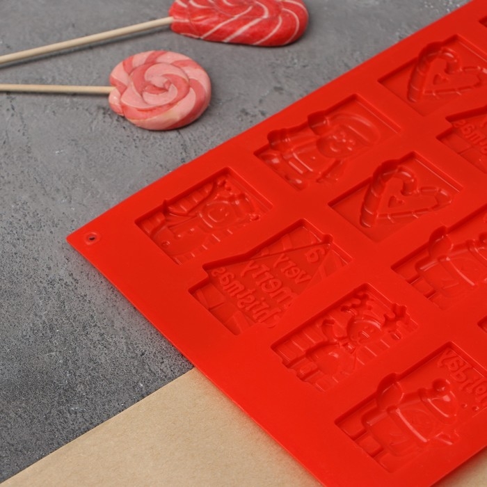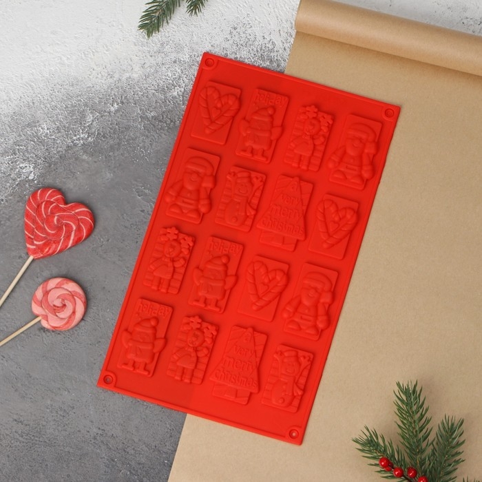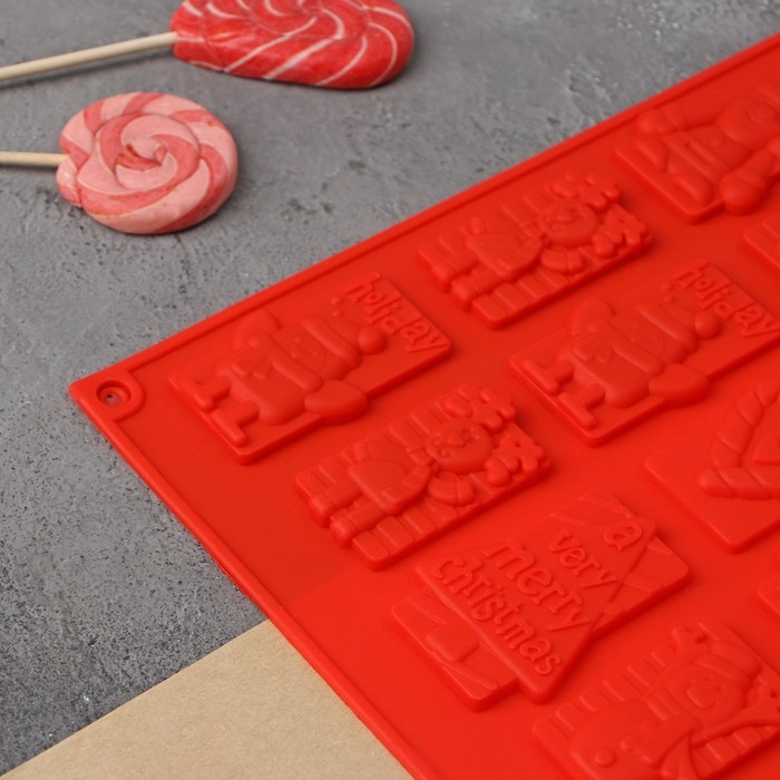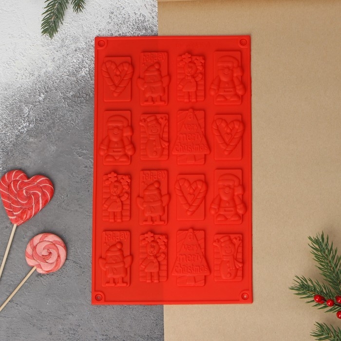 Форма для конфет и шоколада новогодняя Доляна «Рождество», силикон, 30×17 см, 16 ячеек, цвет красный