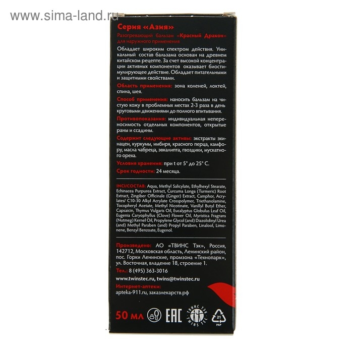 Бальзам разогревающий "911" Красный дракон, 50 мл