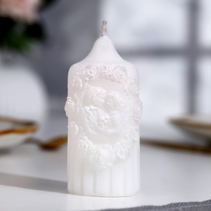 Свеча-цилиндр свадебная "Жених и невеста", 9х4,5 см, белая с блеском, домашний очаг