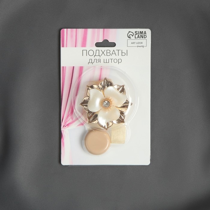 Подхват для штор «Цветок», d = 5,5 см, цвет молочный/золотой