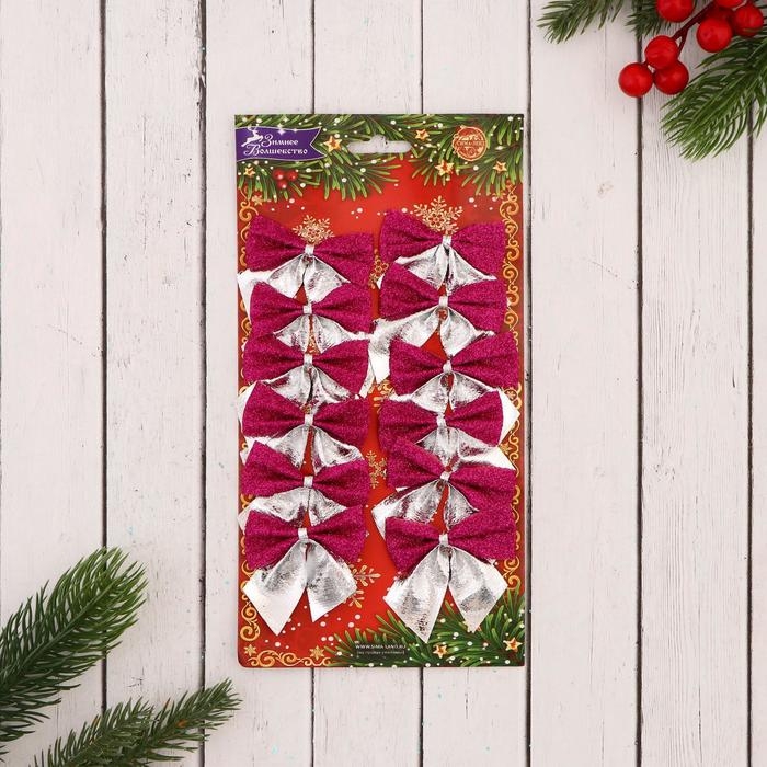 Украшение ёлочное "Бант" (набор 12 шт) 5,5х5 см, серебристо-сиреневый