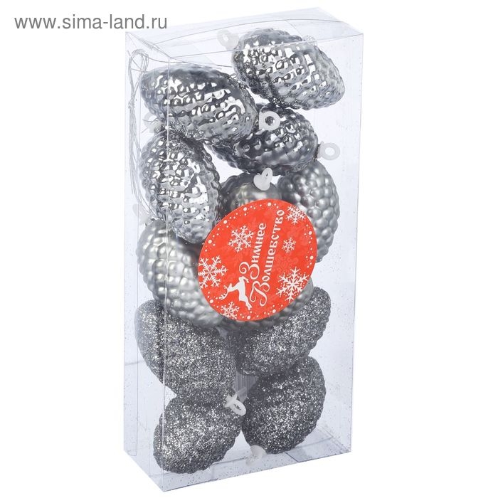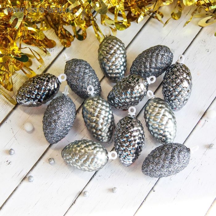 Украшение ёлочное "Шишки" (набор 12 шт) 4х2,5 см, серебро
