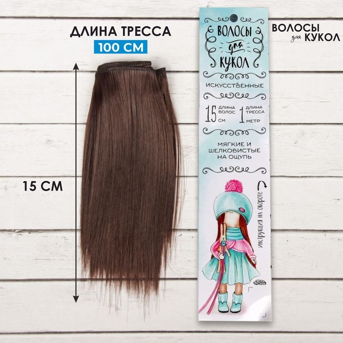 Волосы - тресс для кукол «Прямые» длина волос: 15 см, ширина:100 см, цвет № 4