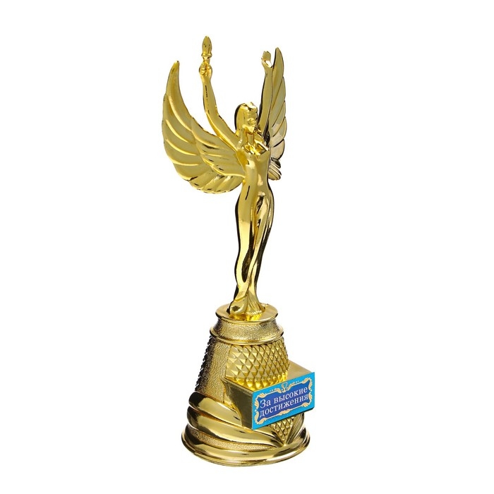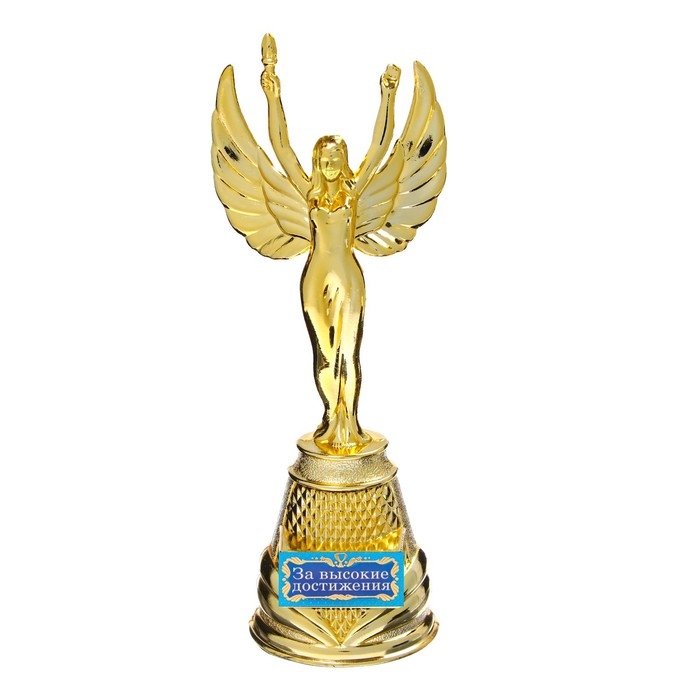 Кубок наградная фигура Ника «За высокие достижения», пластик, золото, 19,5 х 7,3 см выполнена из пластика и дополнена вкладышем с полноцветной печатью.