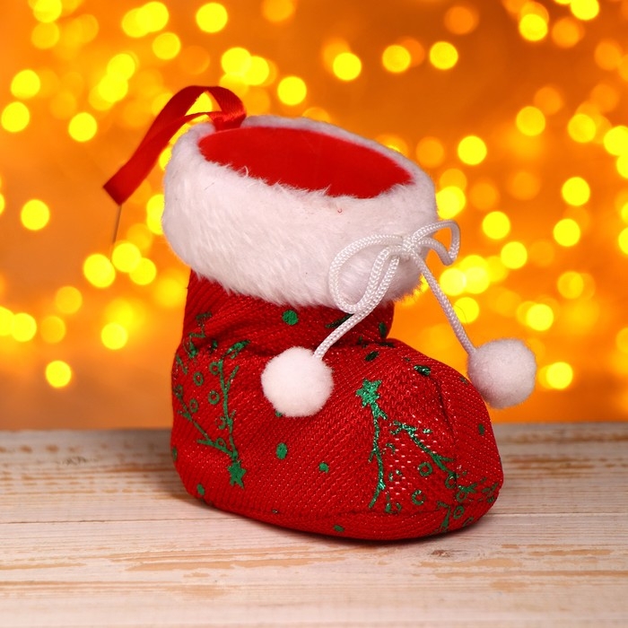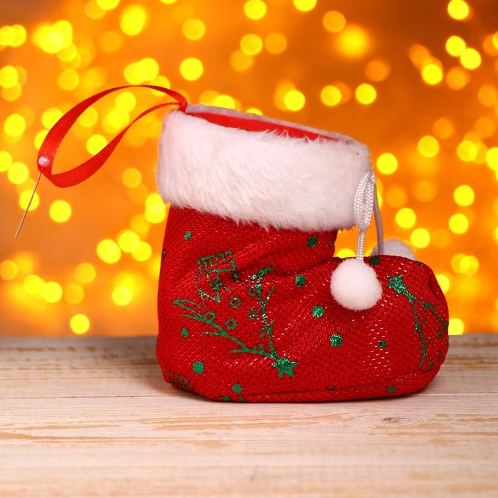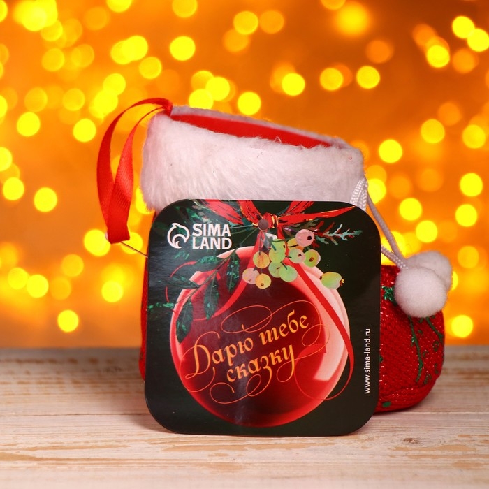 Подарочная упаковка «Сапожок», бантик с помпонами и белой опушкой