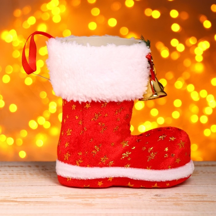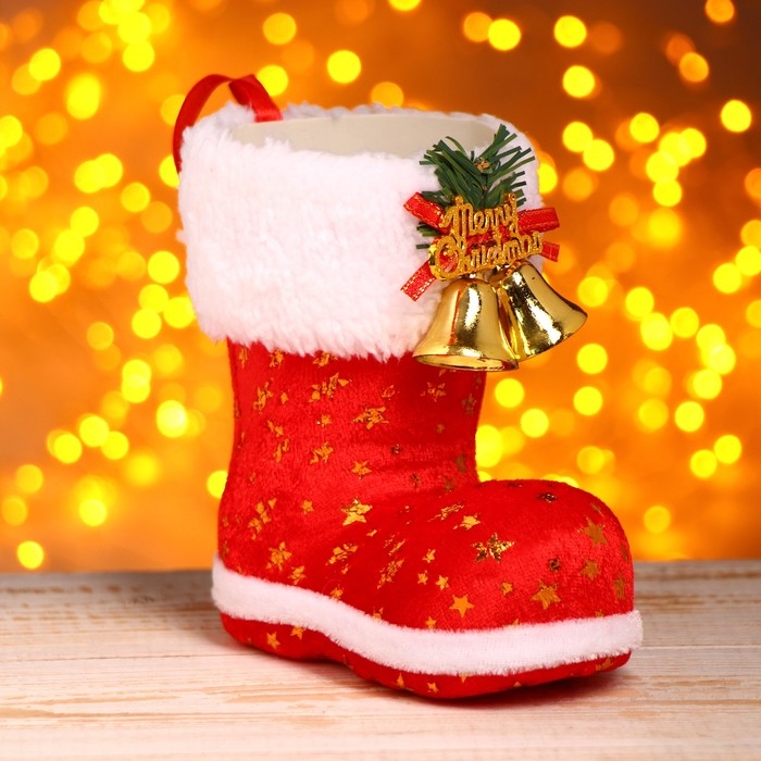 Подарочная упаковка «Сапожок», с колокольчиками, цвет красный