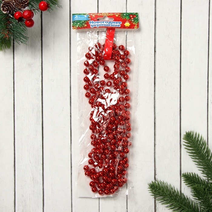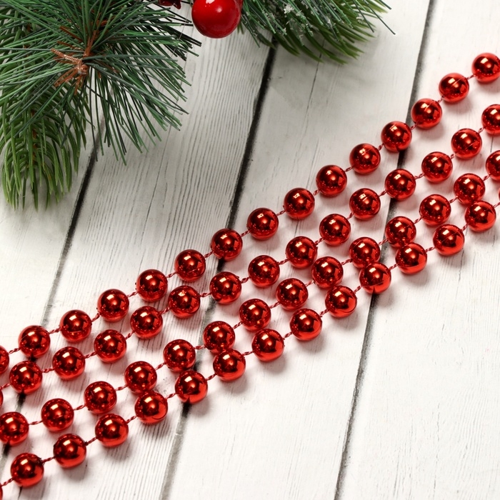 Бусы на ёлку 2,7 м "Шарики" d-9 мм, красный