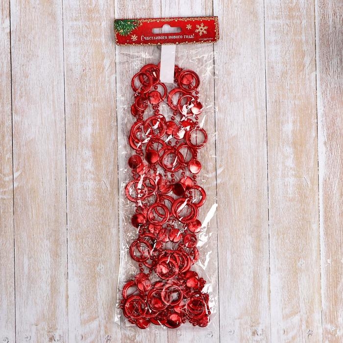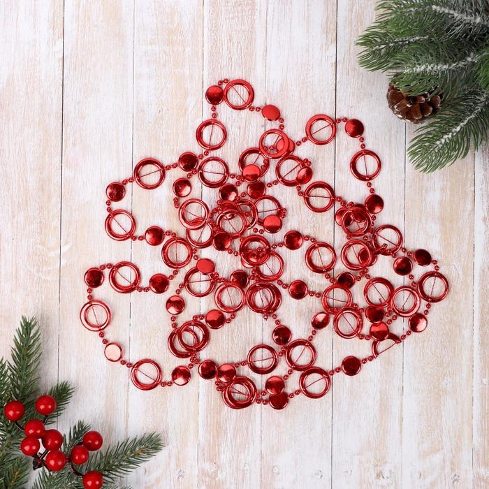 Бусы на ёлку 2,7 м d-10 мм "Кольца" красный