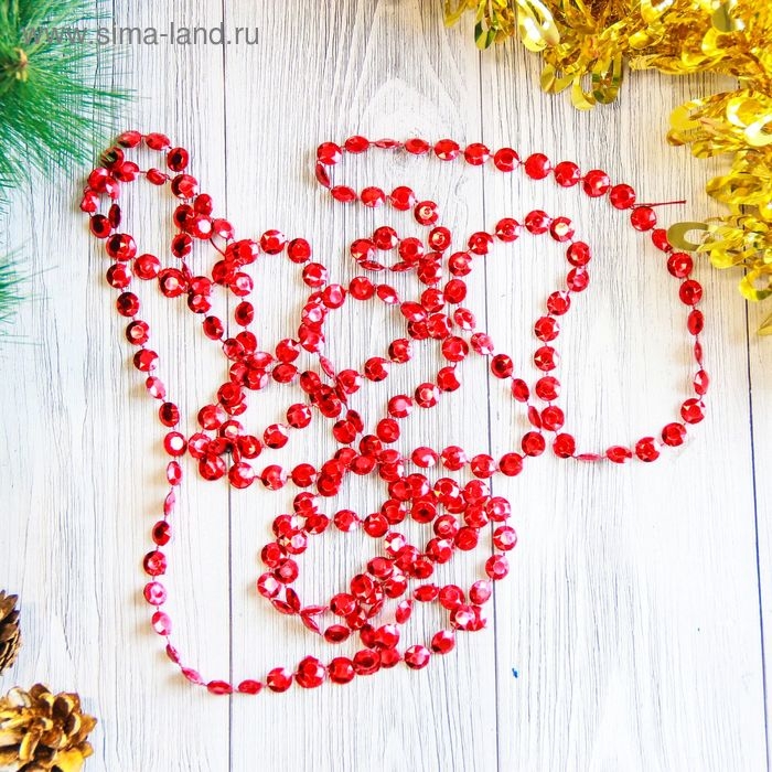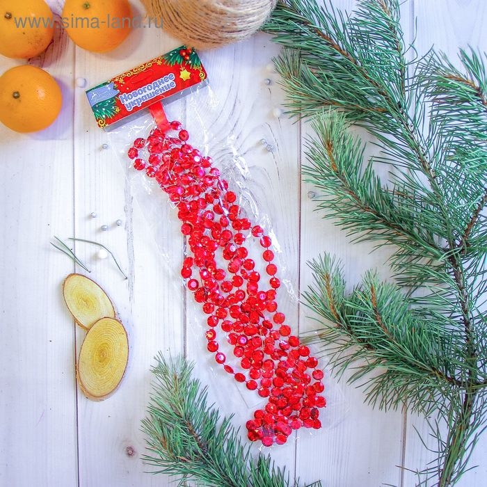 Бусы на ёлку 2,7 м d-10 мм"Грани" красный