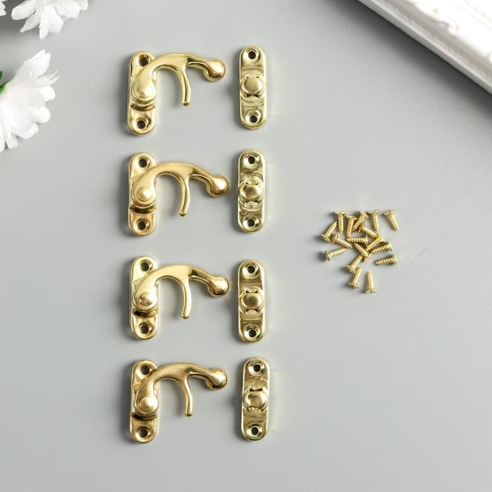 Замок металл для шкатулки "Крючок" золото набор 4 шт 2,7х2,5 см