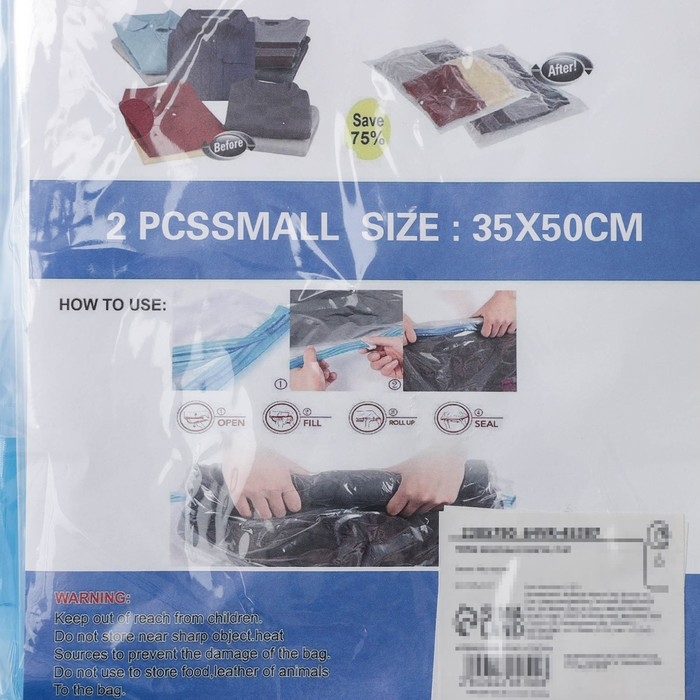 Данный пакет не имеет клапана и предназначен для компактной упаковки вещей в сумки и чемоданы.