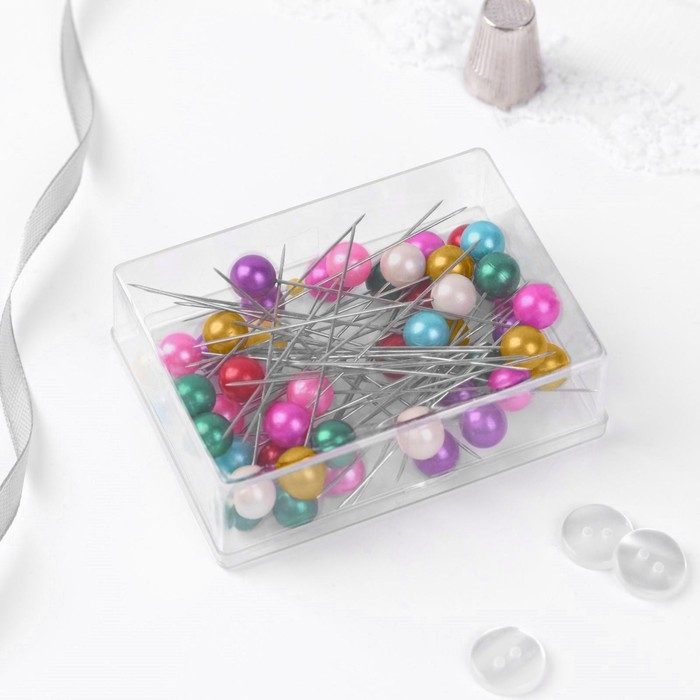 Булавки портновские, 63 мм, 50 шт, цвет разноцветный
