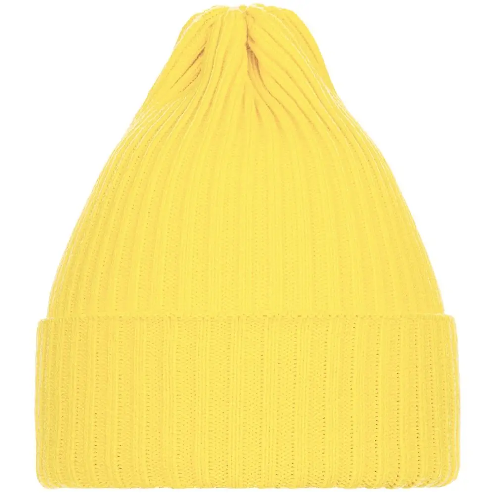 Однослойная шапка фактурной вязки с двойным отворотом.