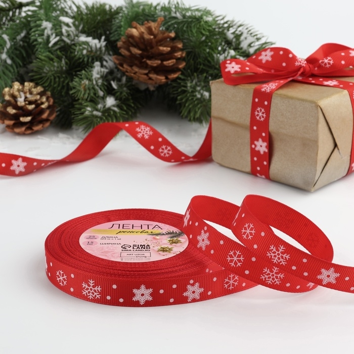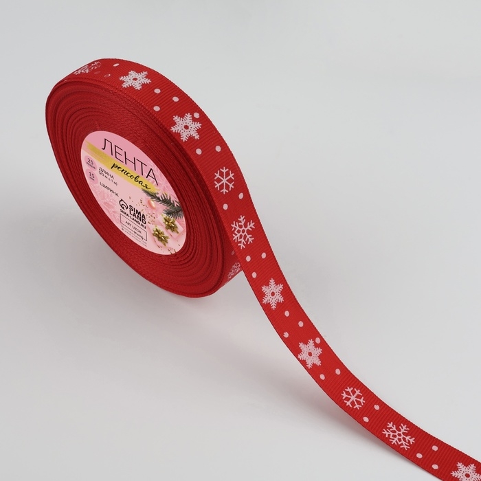 Лента репсовая «Снежинки», 15 мм, 23 ± 1 м, цвет красный №026