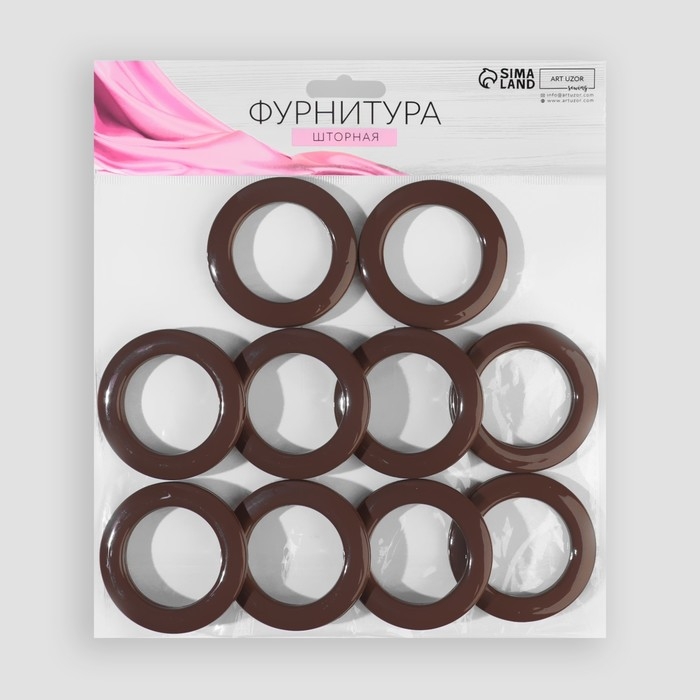 Люверсы для штор, d = 4/6,5 см, 10 шт, цвет коричневый