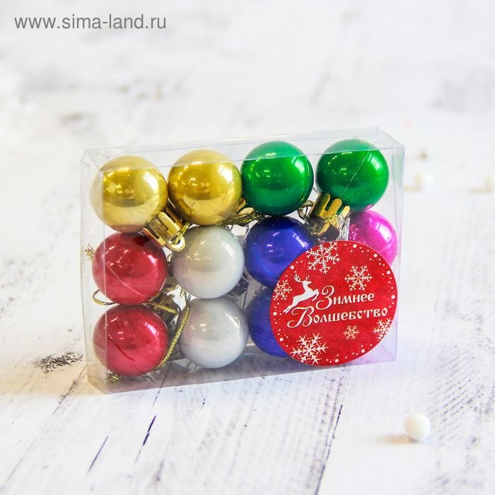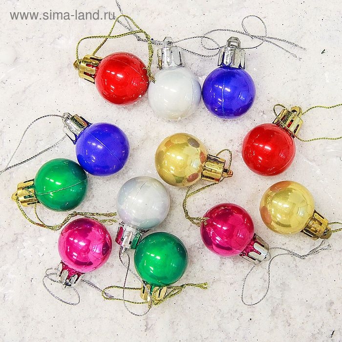 Набор шаров пластик d-2,5 см, 12 шт "Глянец" микс
