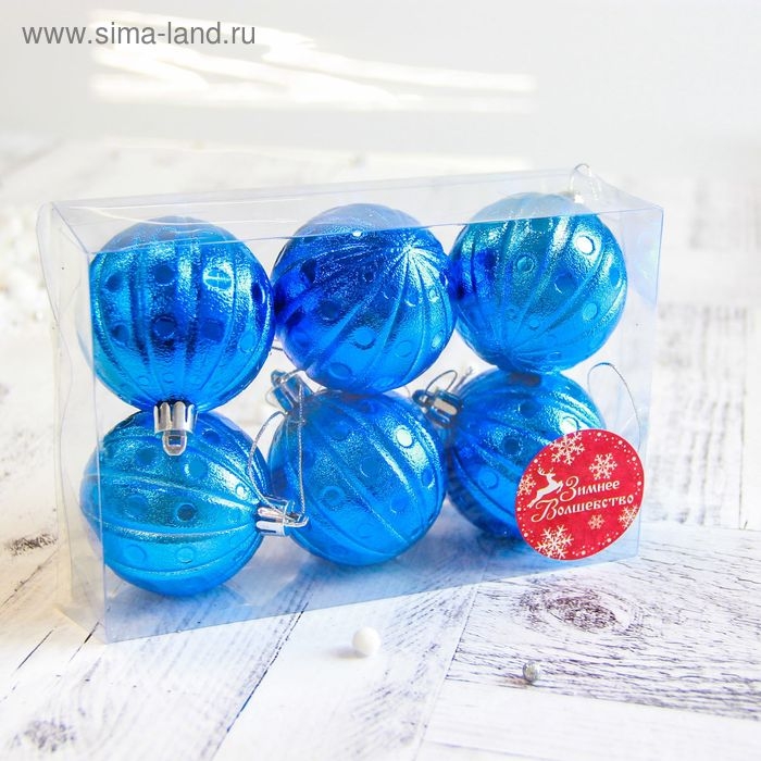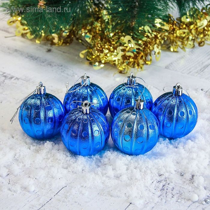 Набор шаров пластик d-6 см, 6 шт "Кружочки" синий