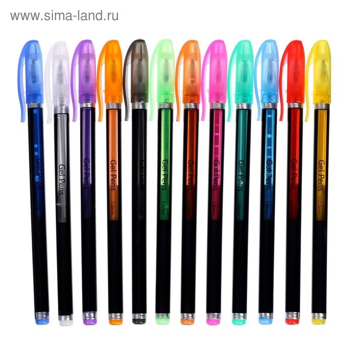 Набор гелевых ручек, 12 цветов, корпус чёрный в полоску в стержень, в блистере на кнопке