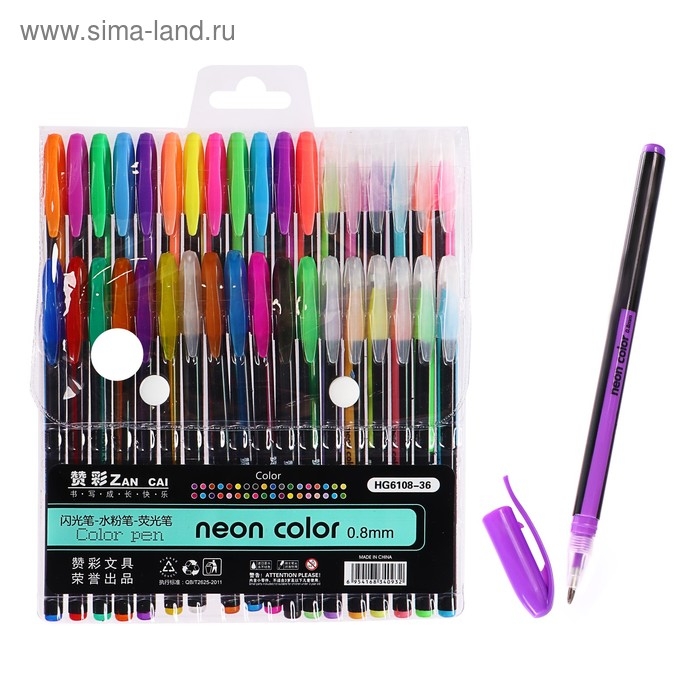 Набор гелевых ручек, 36 цвета, корпус с рисунком, в блистере на кнопке