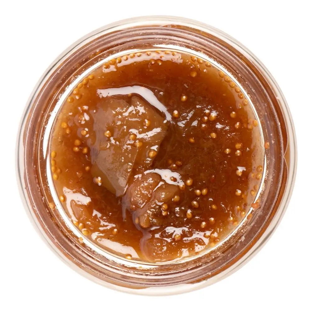 Сложносочиненный конфитюр из фруктов, выращенных на черноморском побережье, прекрасно сочетается как с кавказскими, так и европейскими сырами, вызывая одновременно легкое удивление и улыбку. Вот оно — универсальное дополнение ко всем сырам!Состав: инжир, груша, лимон, сахар, шнапс, корица, пектин.
