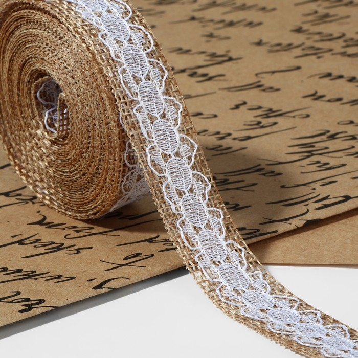 Лента из джута «Кружево», 20 мм, 4,5 ± 0,5 м, цвет бежевый
