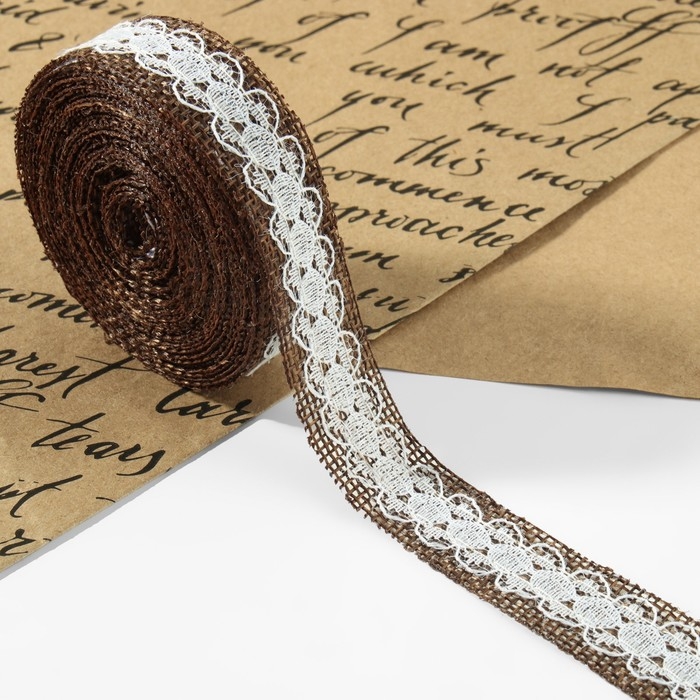 Лента из джута «Кружево», 20 мм, 4,5 ± 0,5 м, цвет коричневый