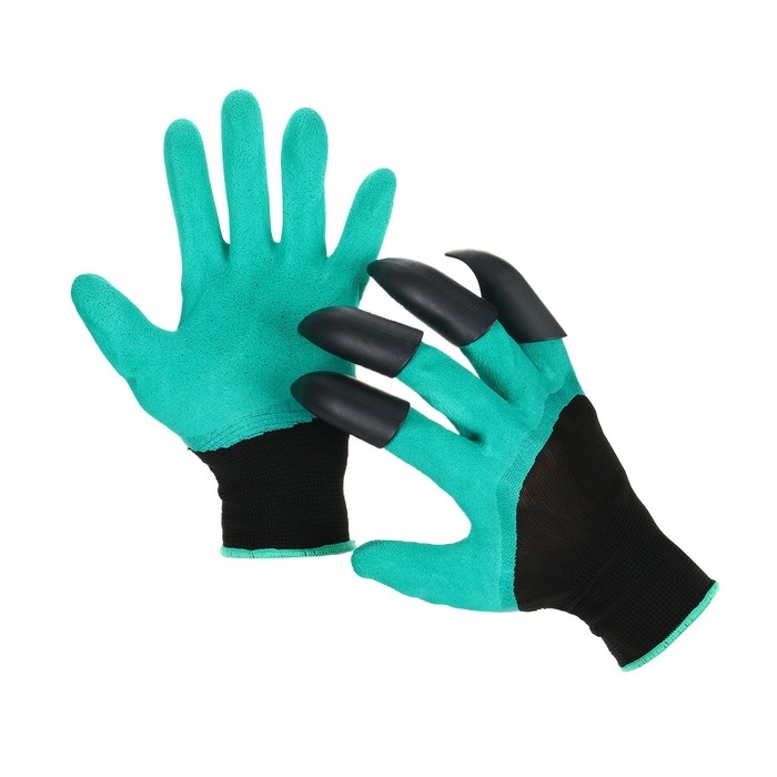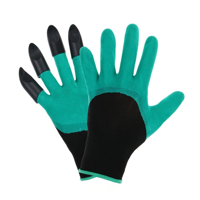 Перчатки садовые, нейлоновые «Землеройки», с латексной пропиткой, с когтями, размер 10, зелёные, Greengo