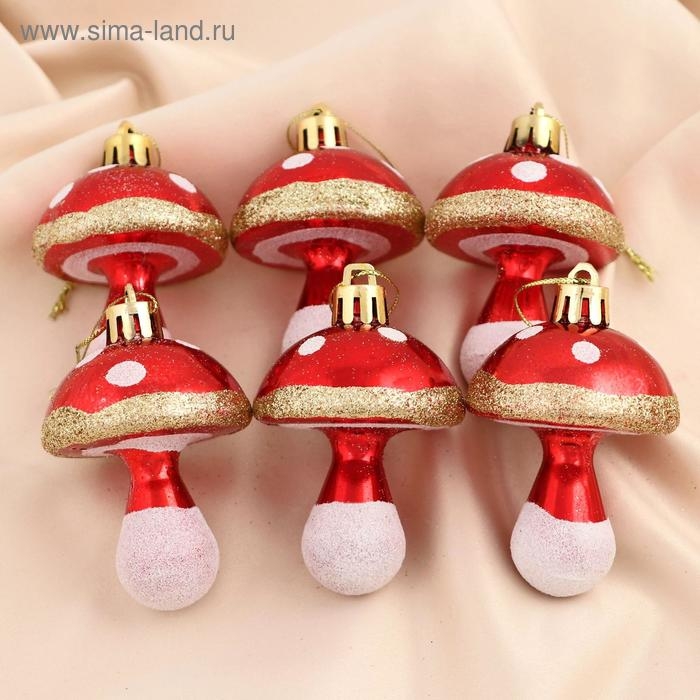 Украшение ёлочное "Грибочек" (набор 6 шт) 4,5х6 см