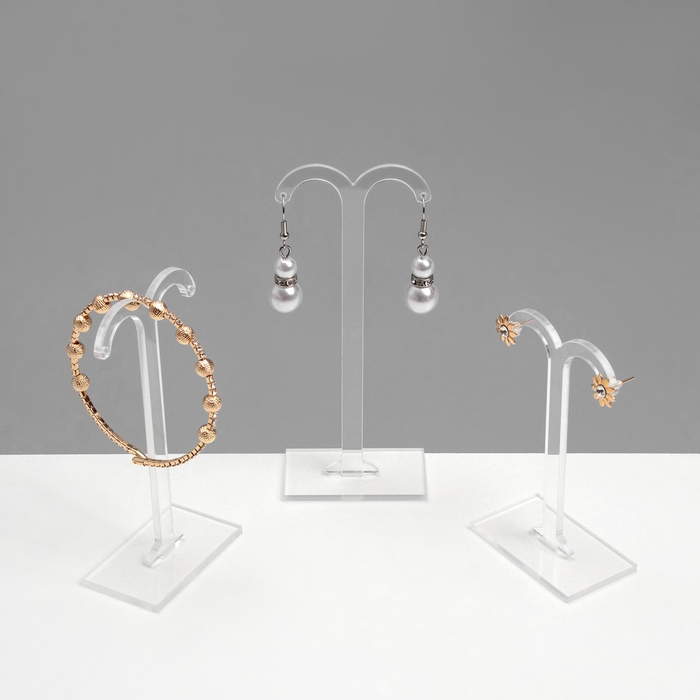 Подставка под серьги, полукруг, набор 3 шт., h=8,5, 10, 12 см, цвет прозрачный