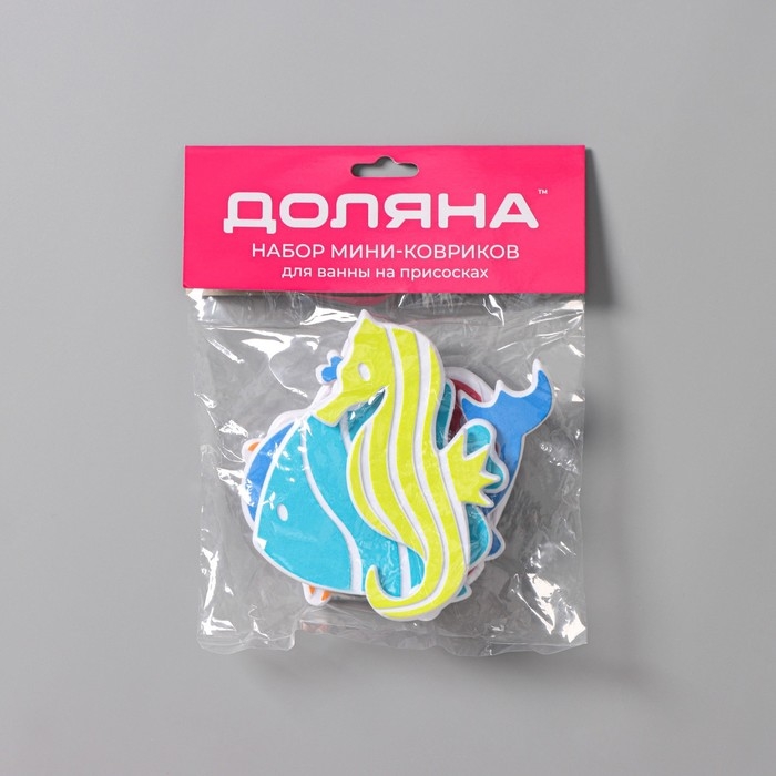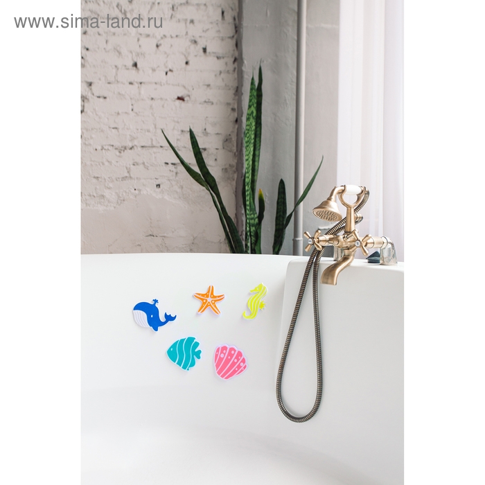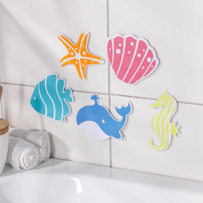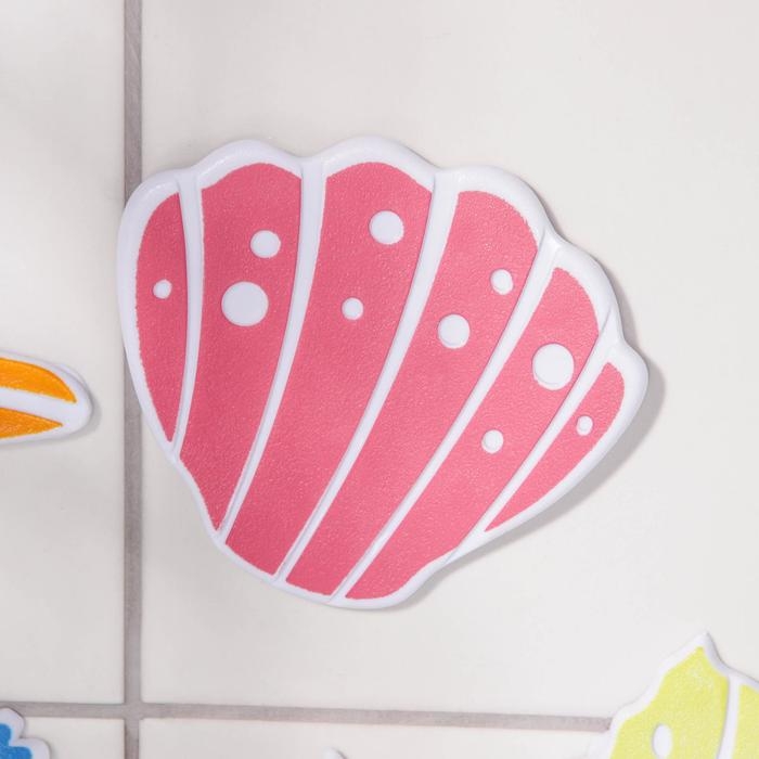 Коврики для ванной на присосках Доляна «Океан», 16×16 см, 5 шт, цвет МИКС