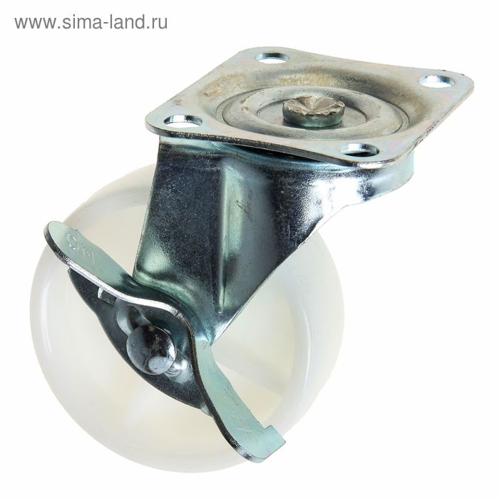 Колесо мебельное, d=75 мм, на площадке, с фиксатором, белое