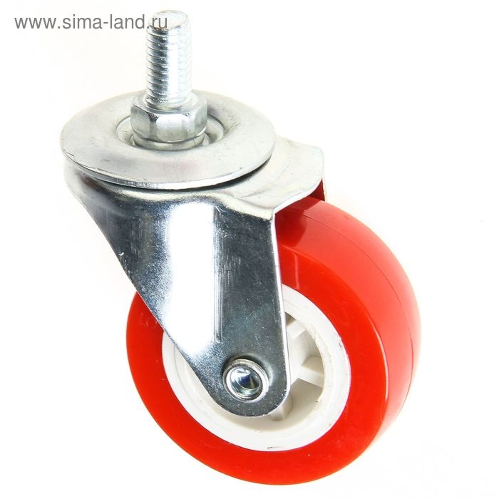 Колесо мебельное, d=75 мм, на площадке, с фиксатором, красное