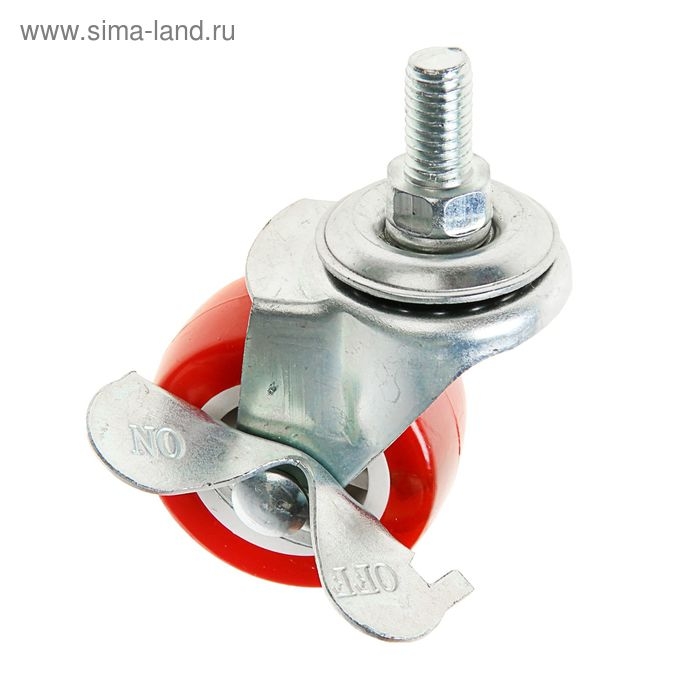 Колесо мебельное, d=50 мм, на площадке, с фиксатором, красное