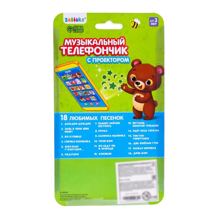 Музыкальный телефончик для самых маленьких «Забавные зверята», с проектором