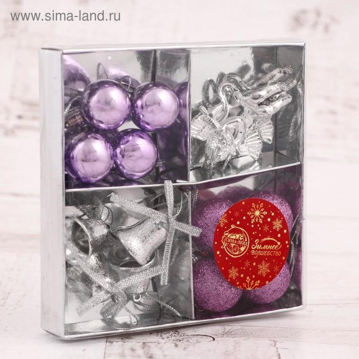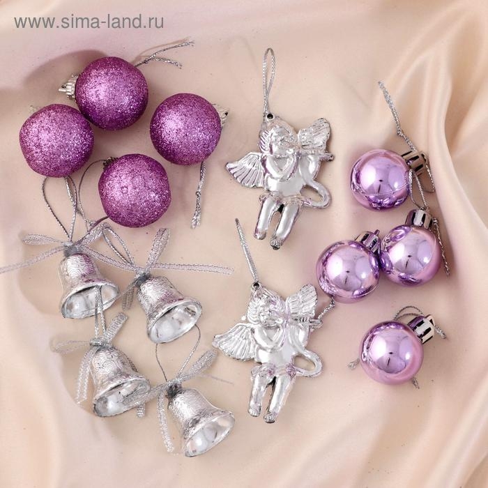 Набор украшений пластик 14 шт "Сюрприз" (4 колокол, 8 шаров, 2 ангела) серебро, фиолет