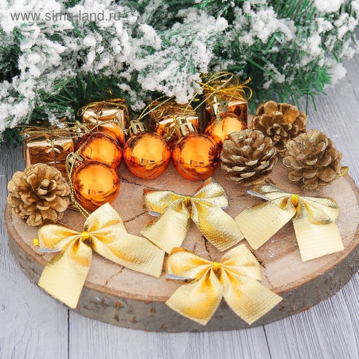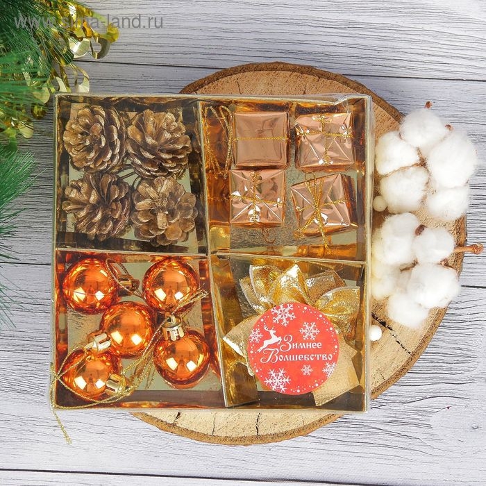 Набор украшений пластик 17 шт "Сюрприз" (4 шишки,4 подарка,4 бантика,5 шариков)