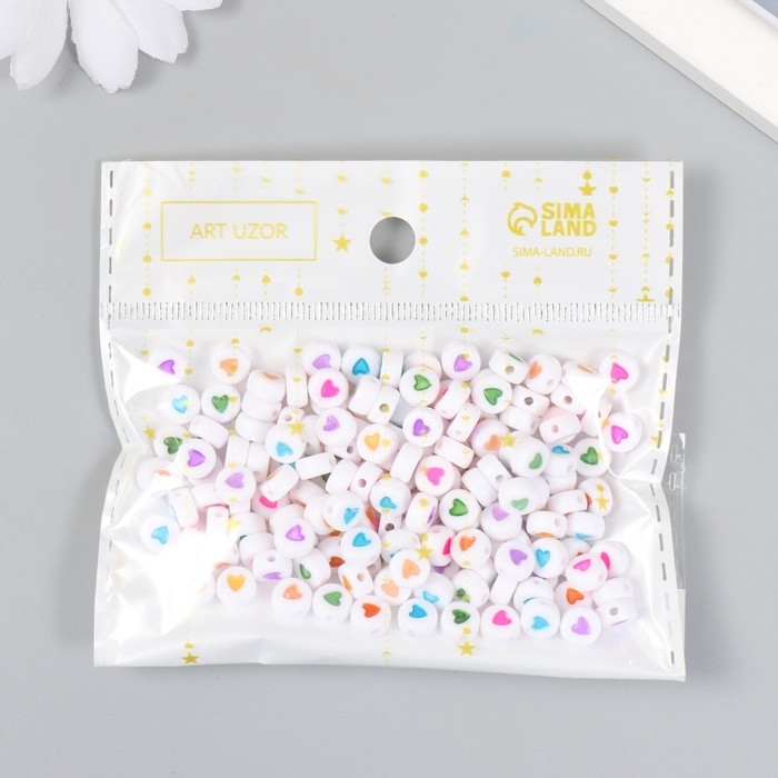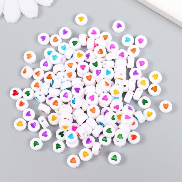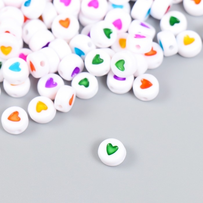 Набор бусин для творчества пластик "Сердечко в круге" разноцветные 20 гр 0,х0,7 см