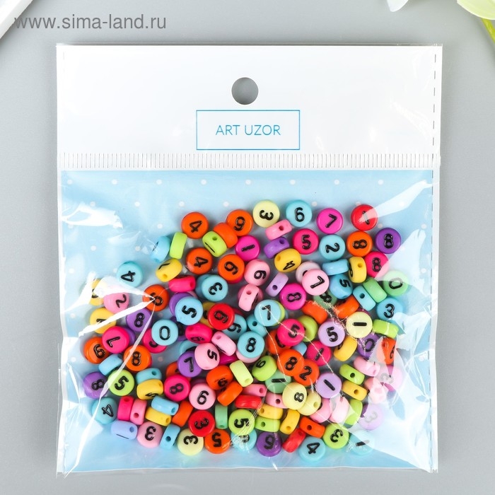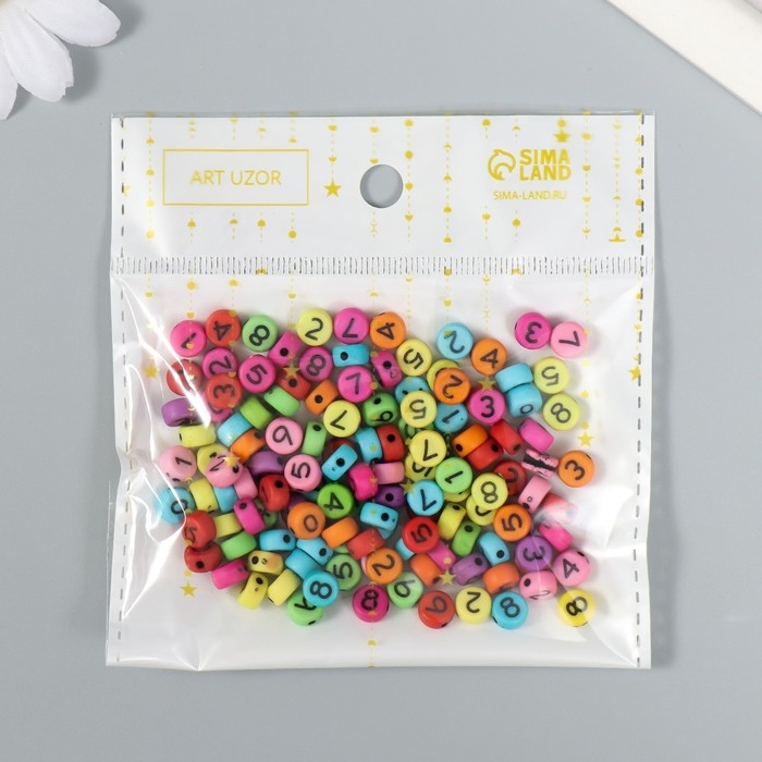 Бусины для творчества пластик "Разноцветные цифры" набор 20 гр 0,7х0,7 см